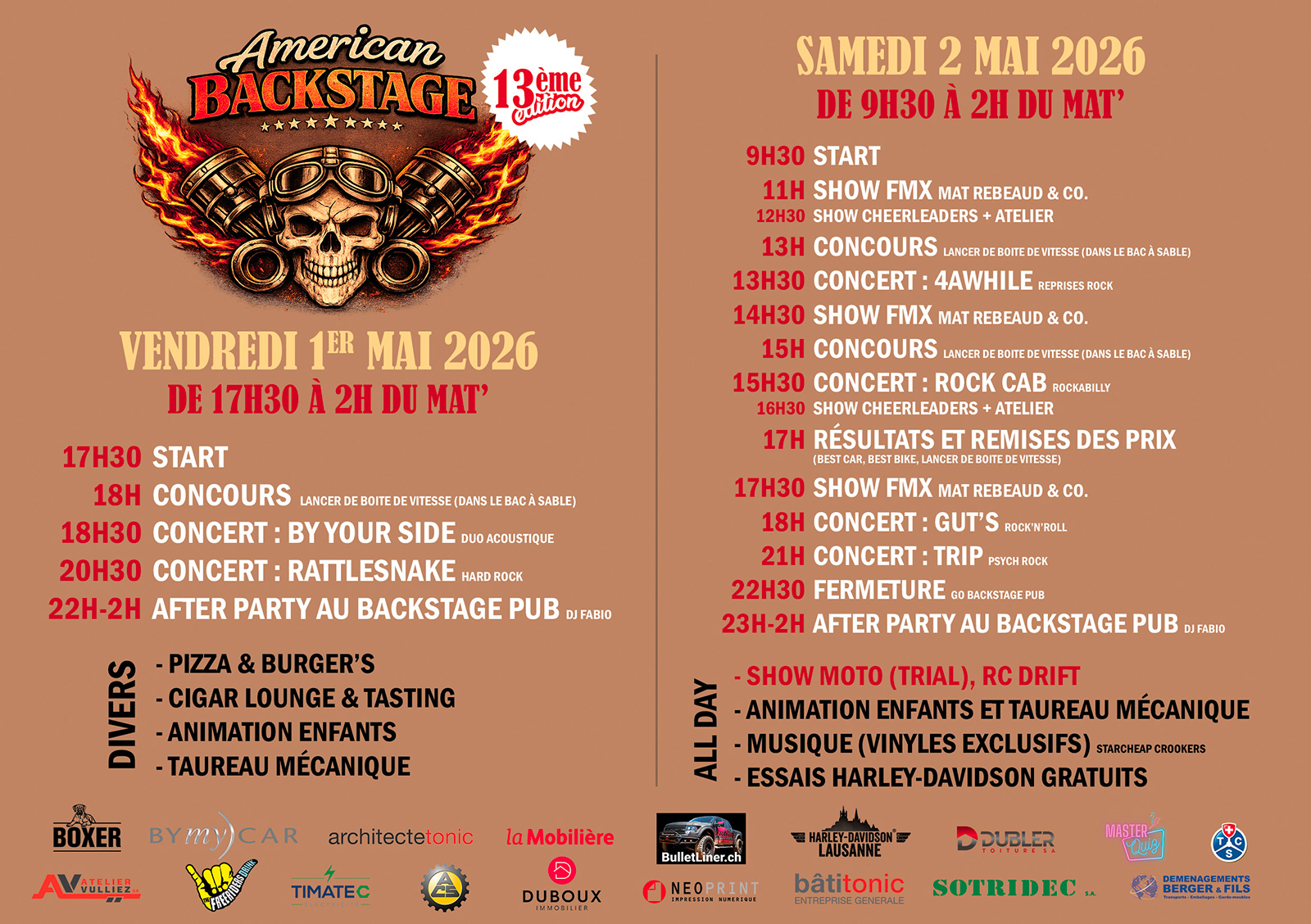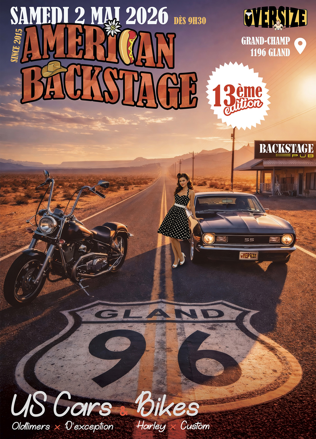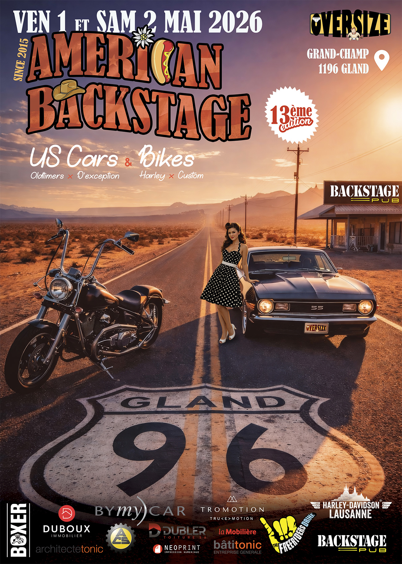 Si vous avez une voiture américaine ou une moto (Harley, old school, custom) nous vous guiderons directement pour vous parquer sur place.